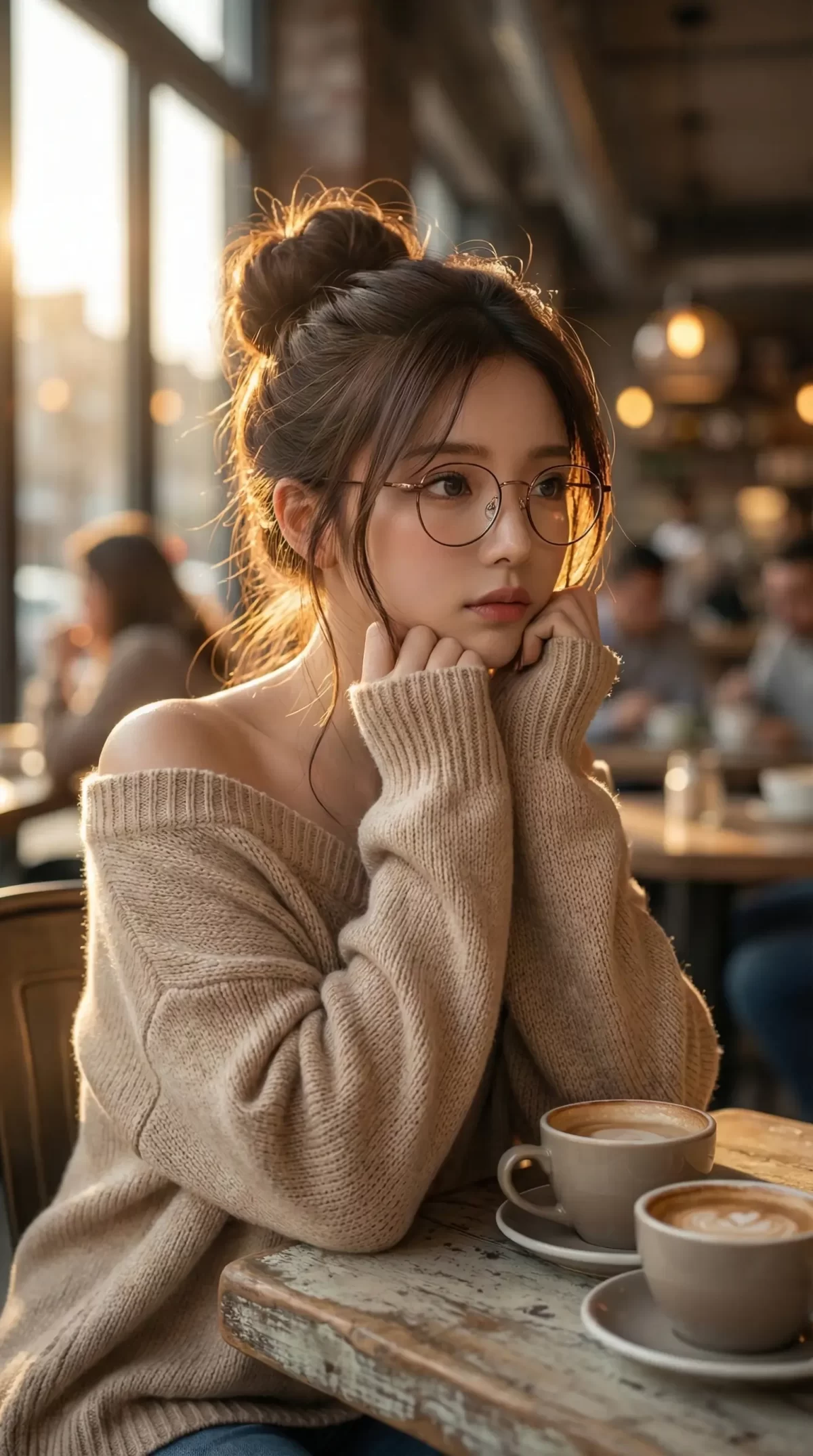 【AI美女】朝の光に包まれて。オフショルニットの彼女と過ごす、最高に贅沢な休日の癒やし