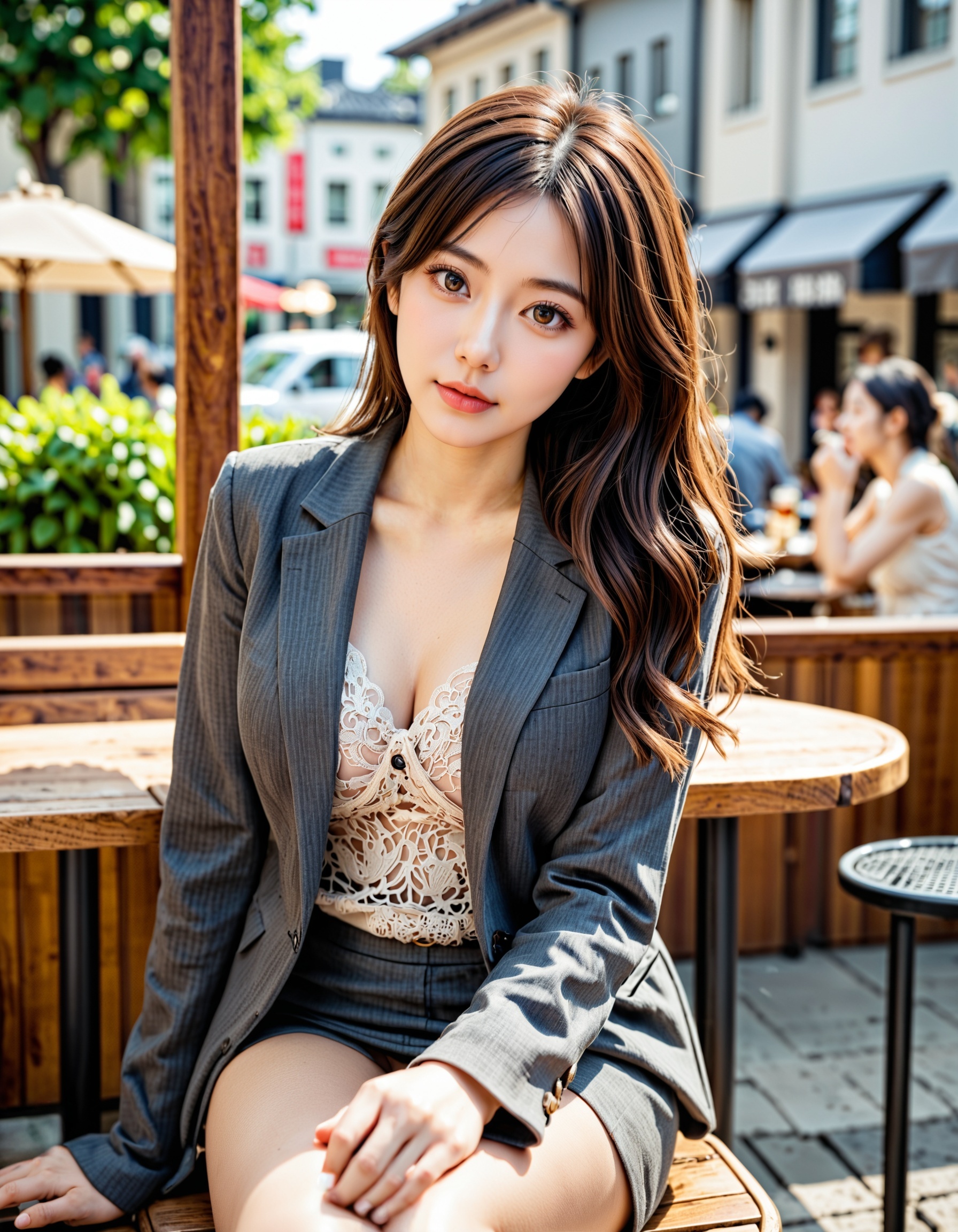 見てよこの透明感と、思わずドキッとしちゃう表情。ヨーロッパ風のお洒落なカフェテラスに、こんな美人が座ってたら二度見、いや三度見は確定だよな。