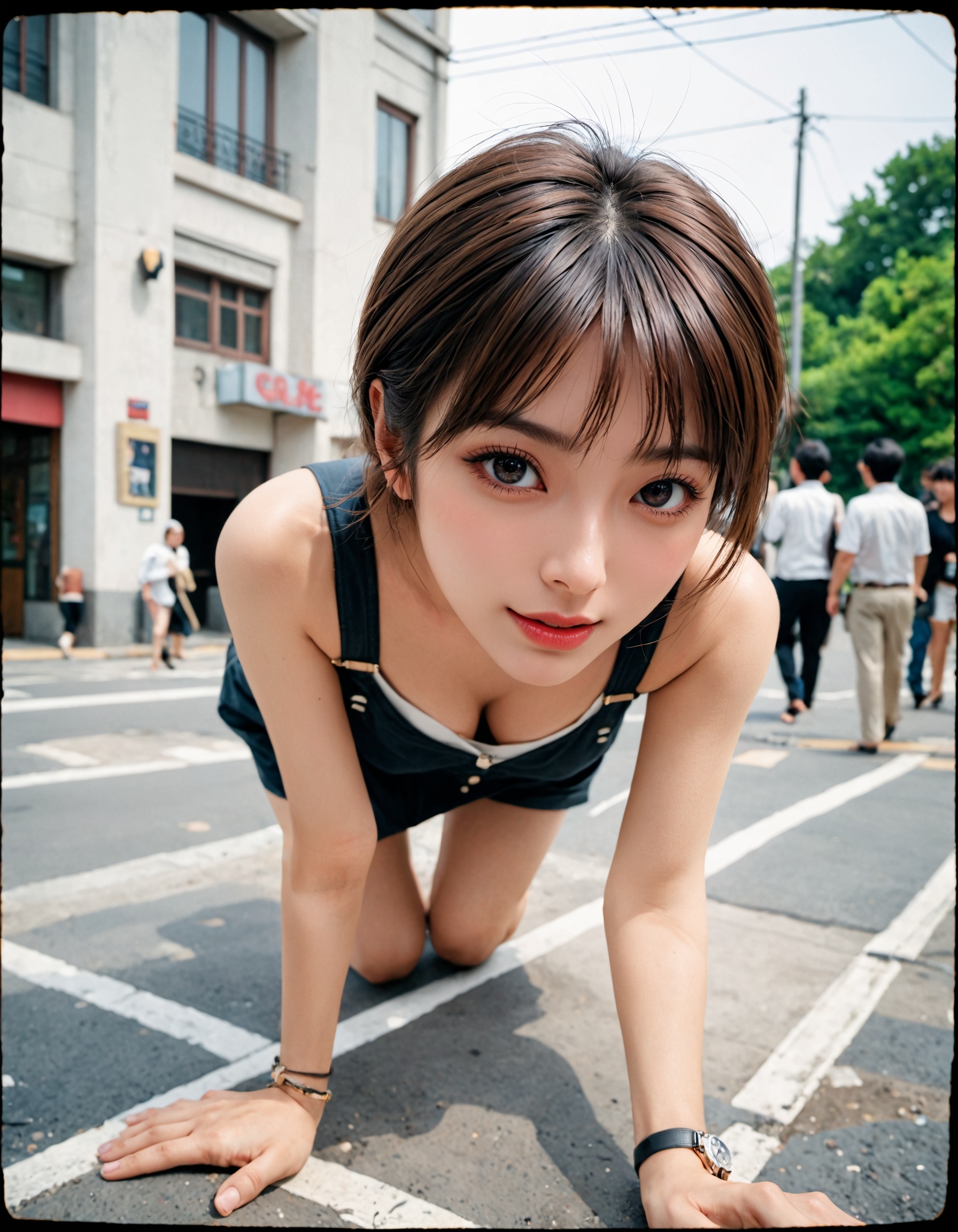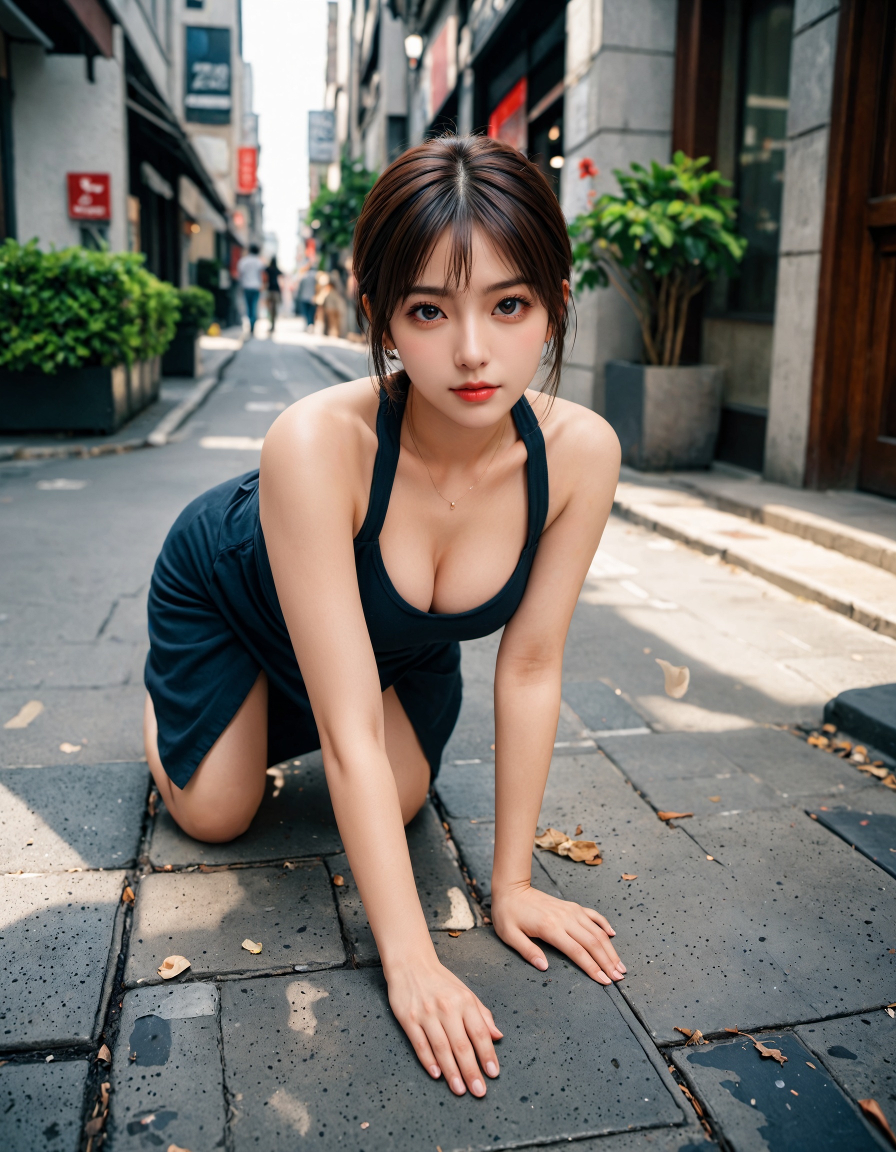 おい、ちょっと待ってくれ。 街中でこんな綺麗な子が、こんな無防備なポーズでうずくまってたら、思わず三度見しちまうよな!?