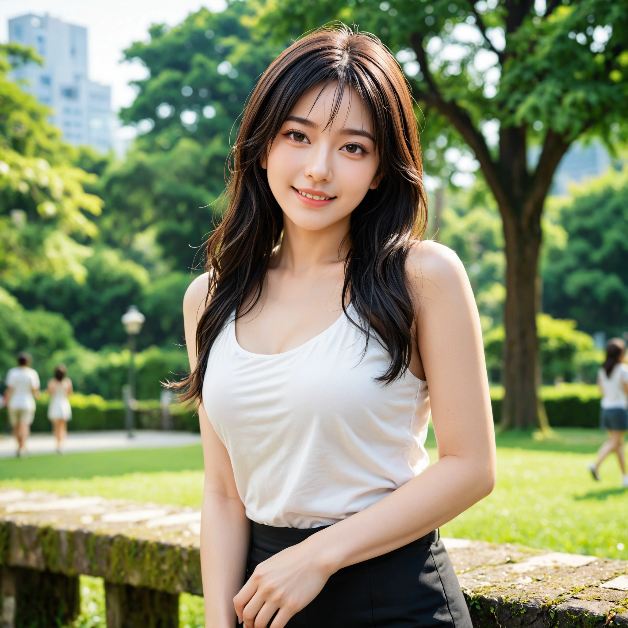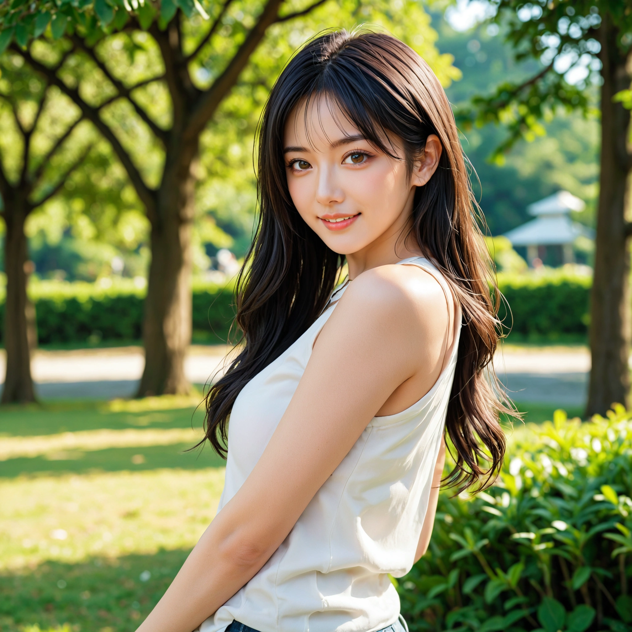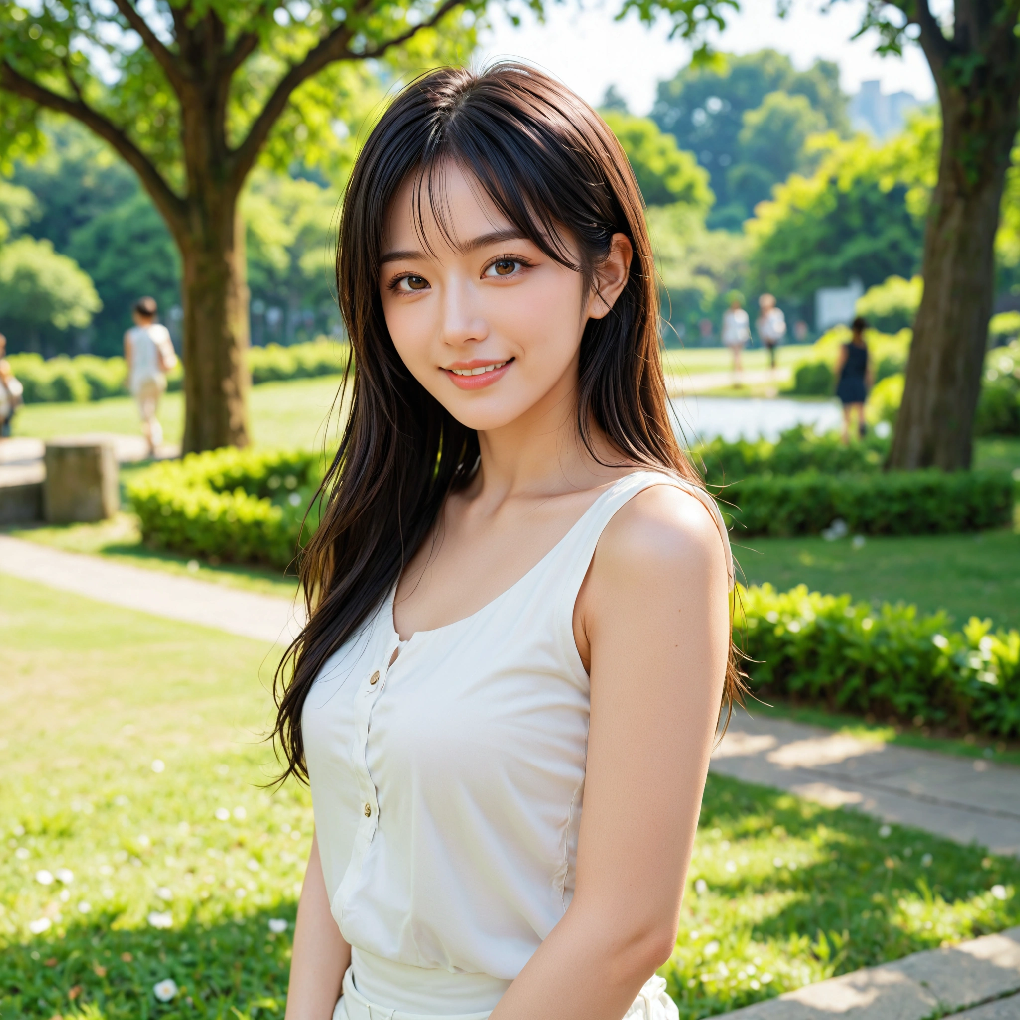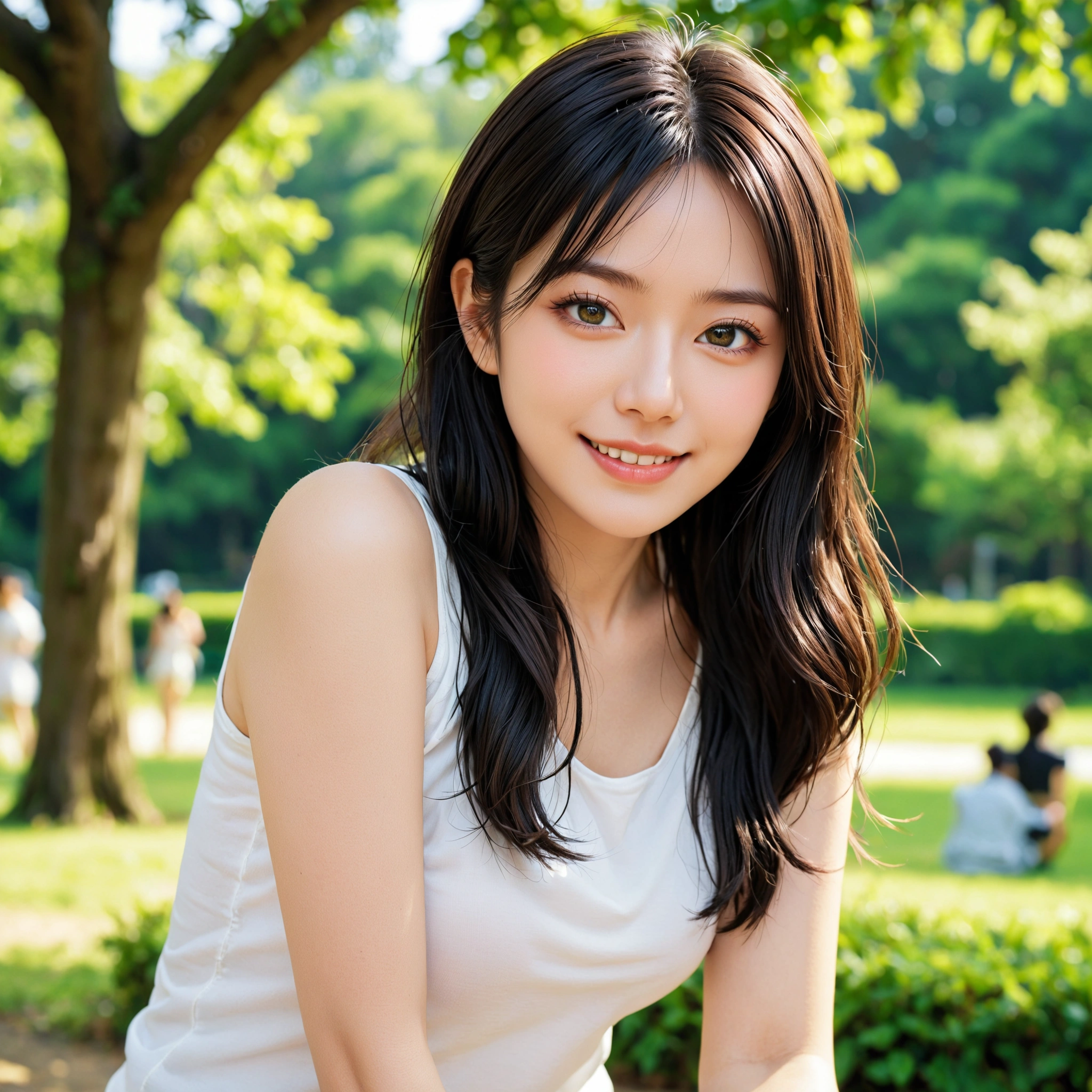 見てくれよ、この圧倒的な透明感を。 緑豊かな公園の木漏れ日の中で、こんな優しい笑顔を向けられたら、もう好きになっちゃうだろ…。