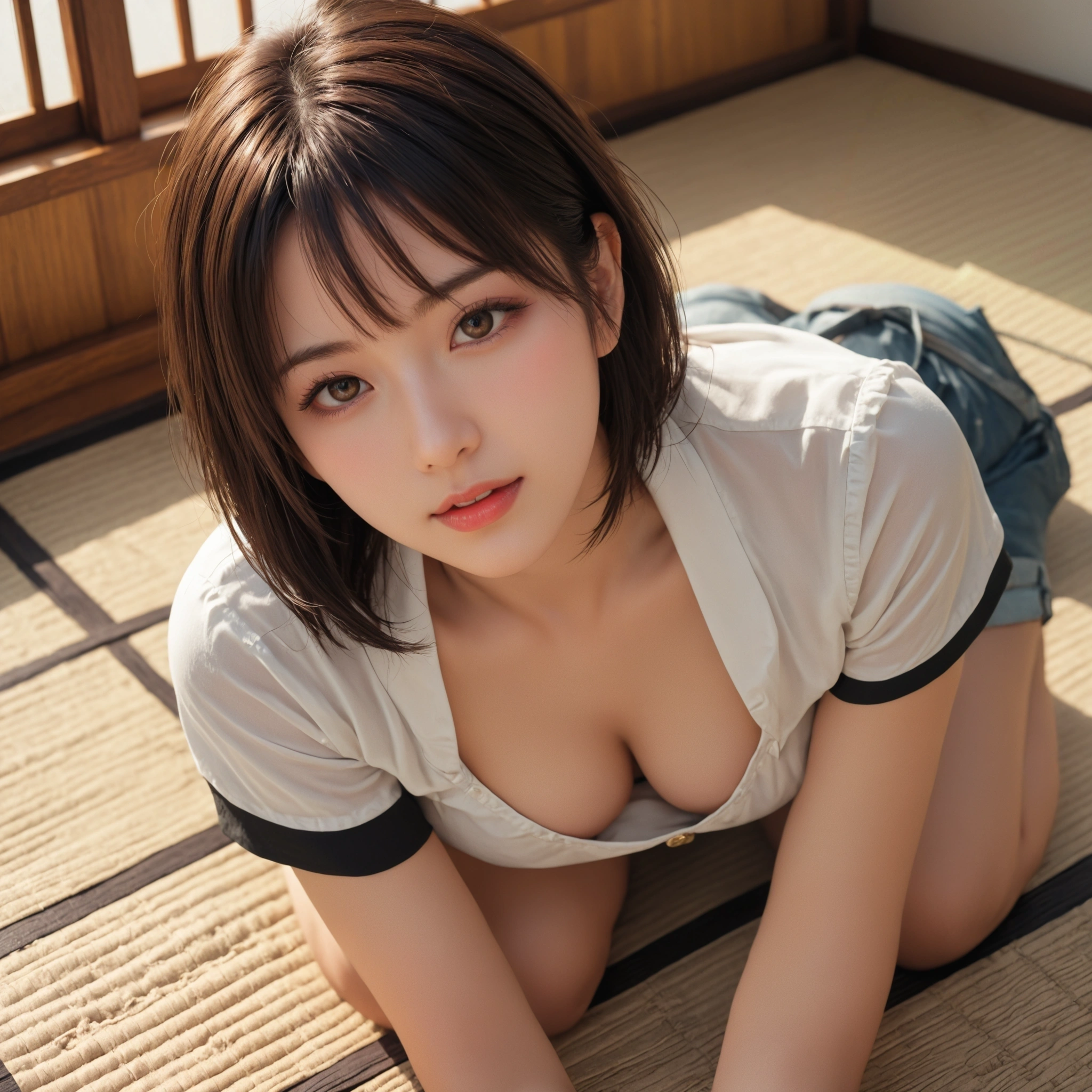 このドキドキは、まだ終わらない…! 好評につき、和室でくつろぐ無防備AI美女が、アンコール登場だぜ! 今回は、前回よりもさらに大胆で、息が止まるほどの色気を見せつけてくれるぞ。