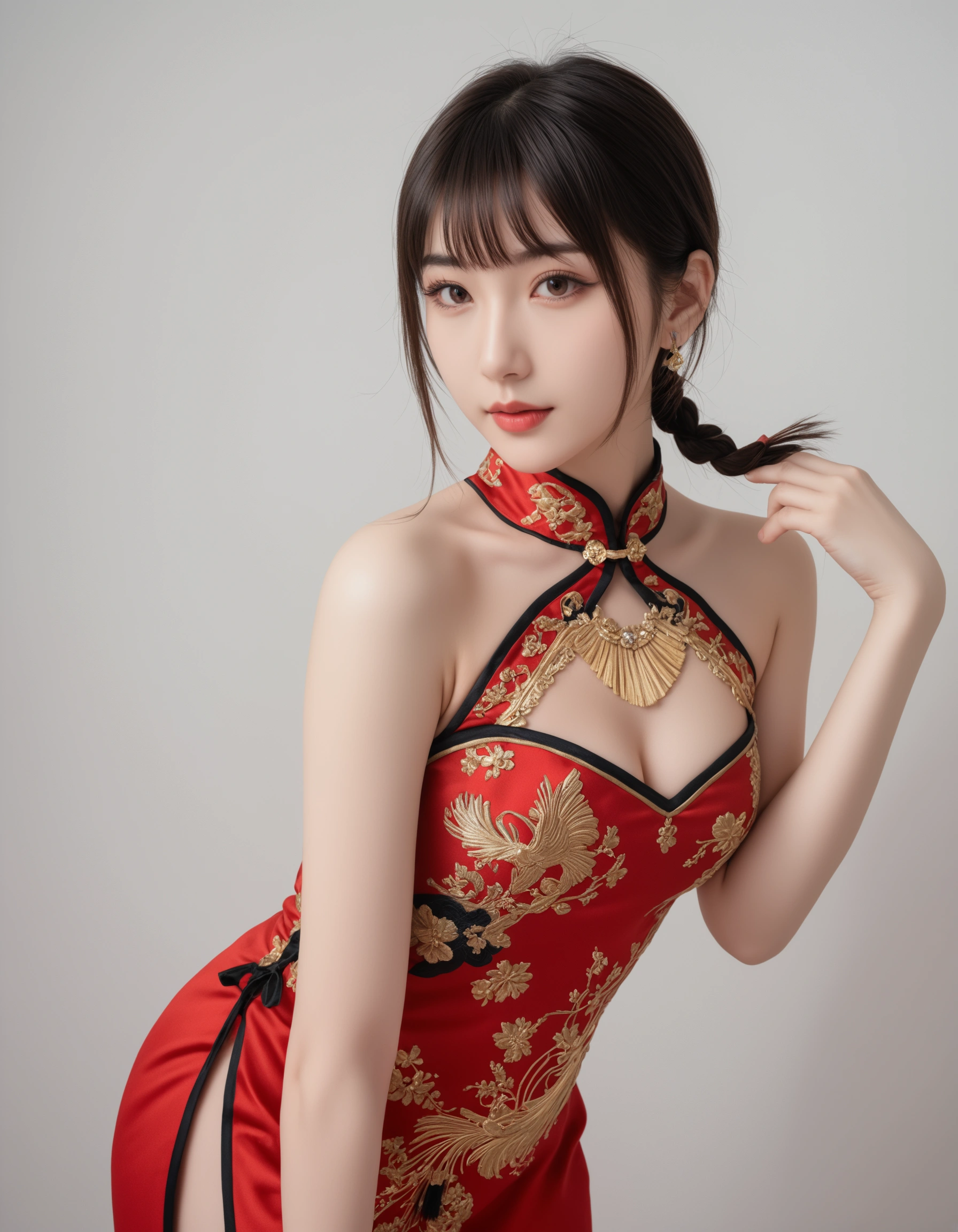 正直、今回のAI美女シリーズ……個人的にもかなり「刺さる」仕上がりになってます。 テーマはずばり、「赤チャイナドレス × 黒髪三つ編み」です!
