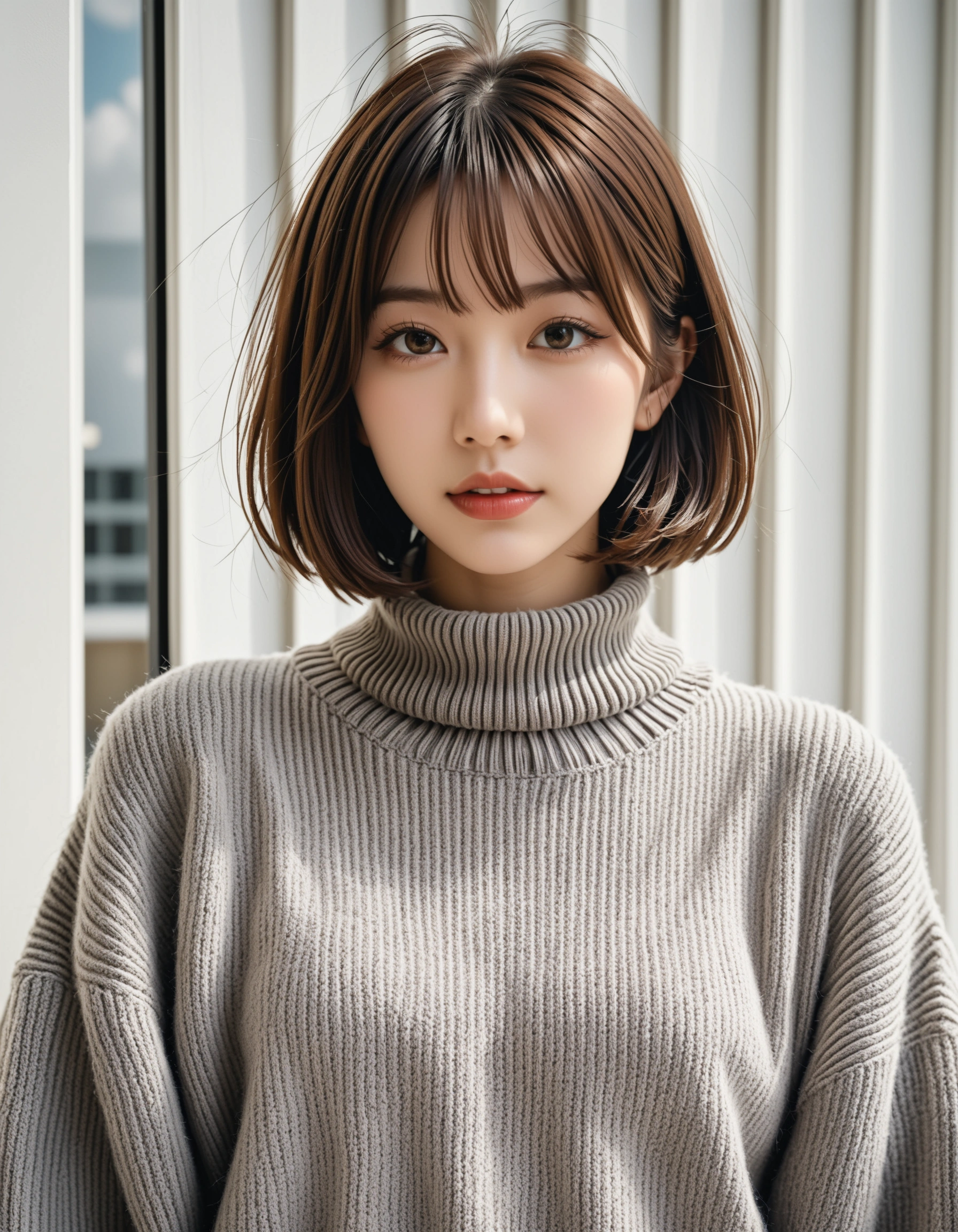 今回のテーマは、王道にして最強の組み合わせ。「ショートボブ × タートルネック」です。