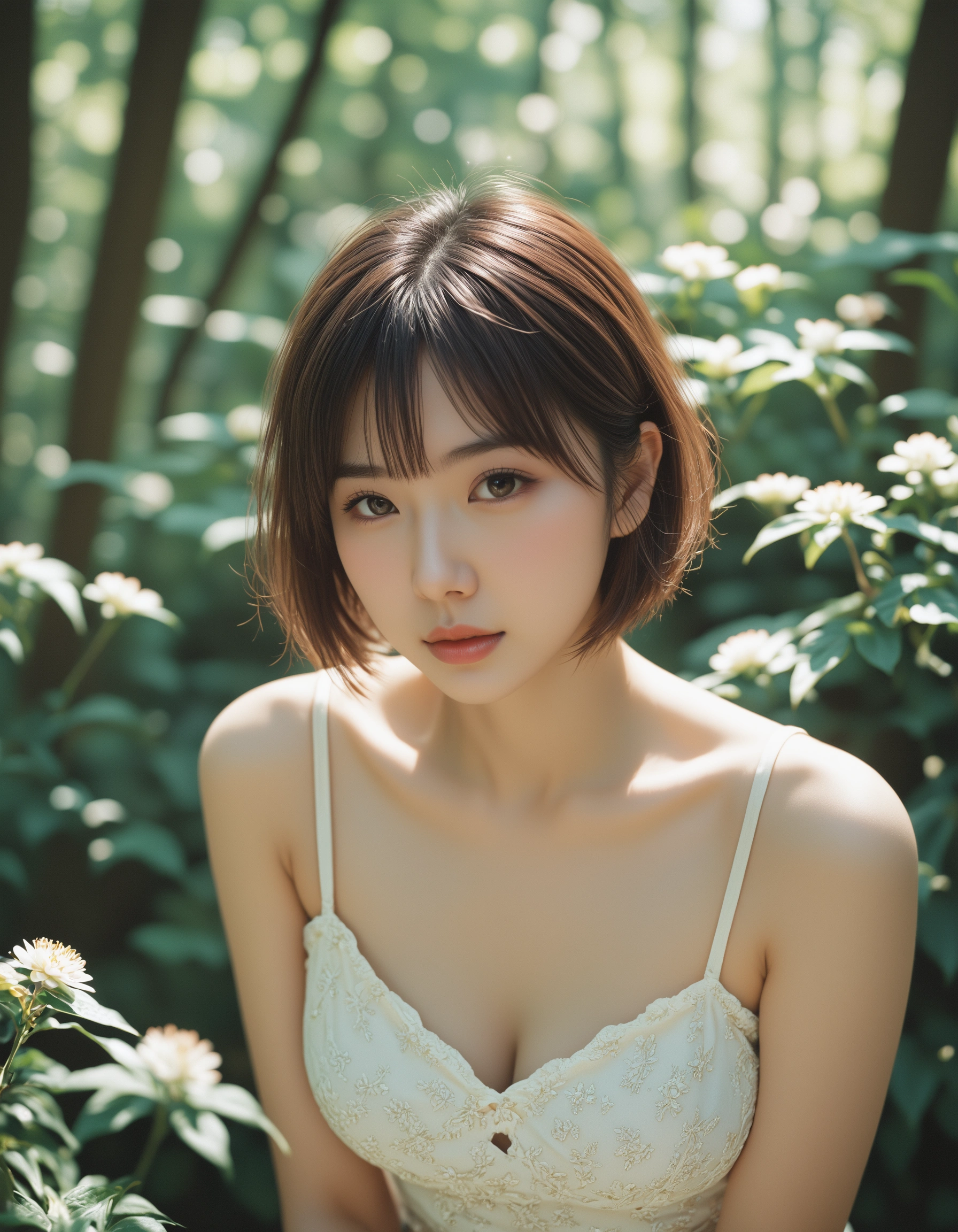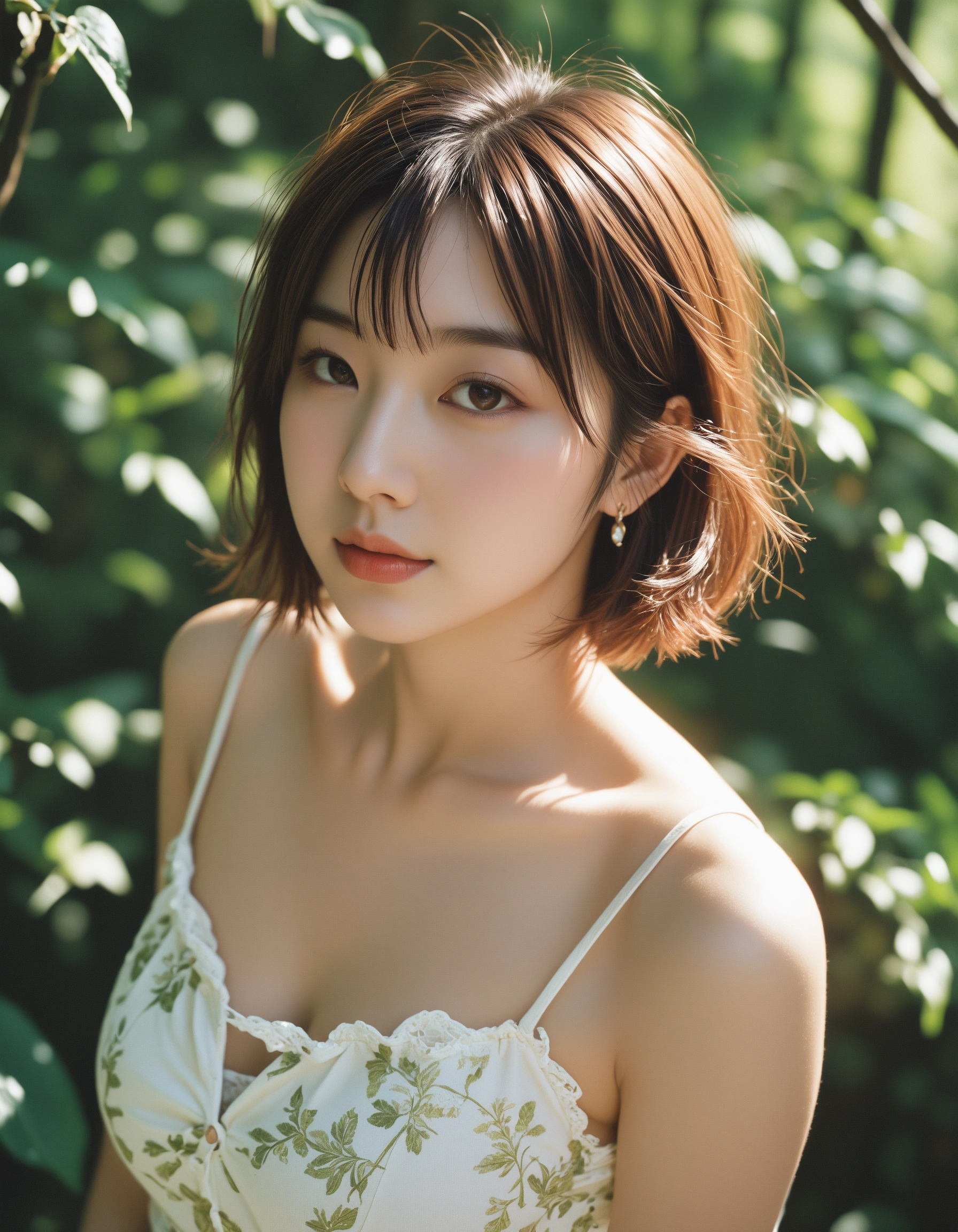 今回のテーマはズバリ、「秘密の森での避暑地デート」。 新緑の鮮やかな緑と、そこから差し込む木漏れ日。そして、その中で佇む透明感抜群のショートボブ美女……。どうですか、このマイナスイオン全開のシチュエーション!