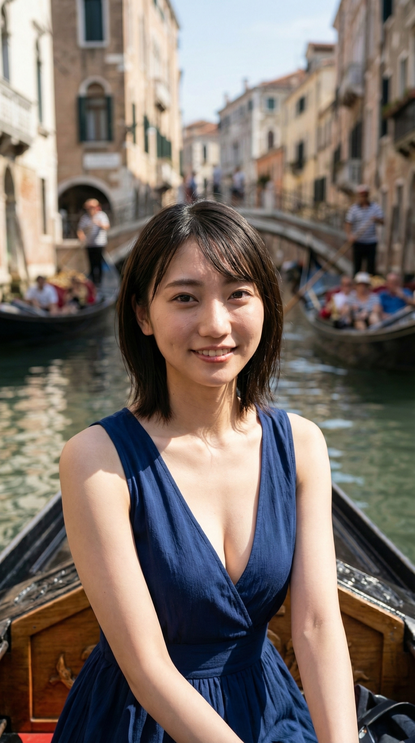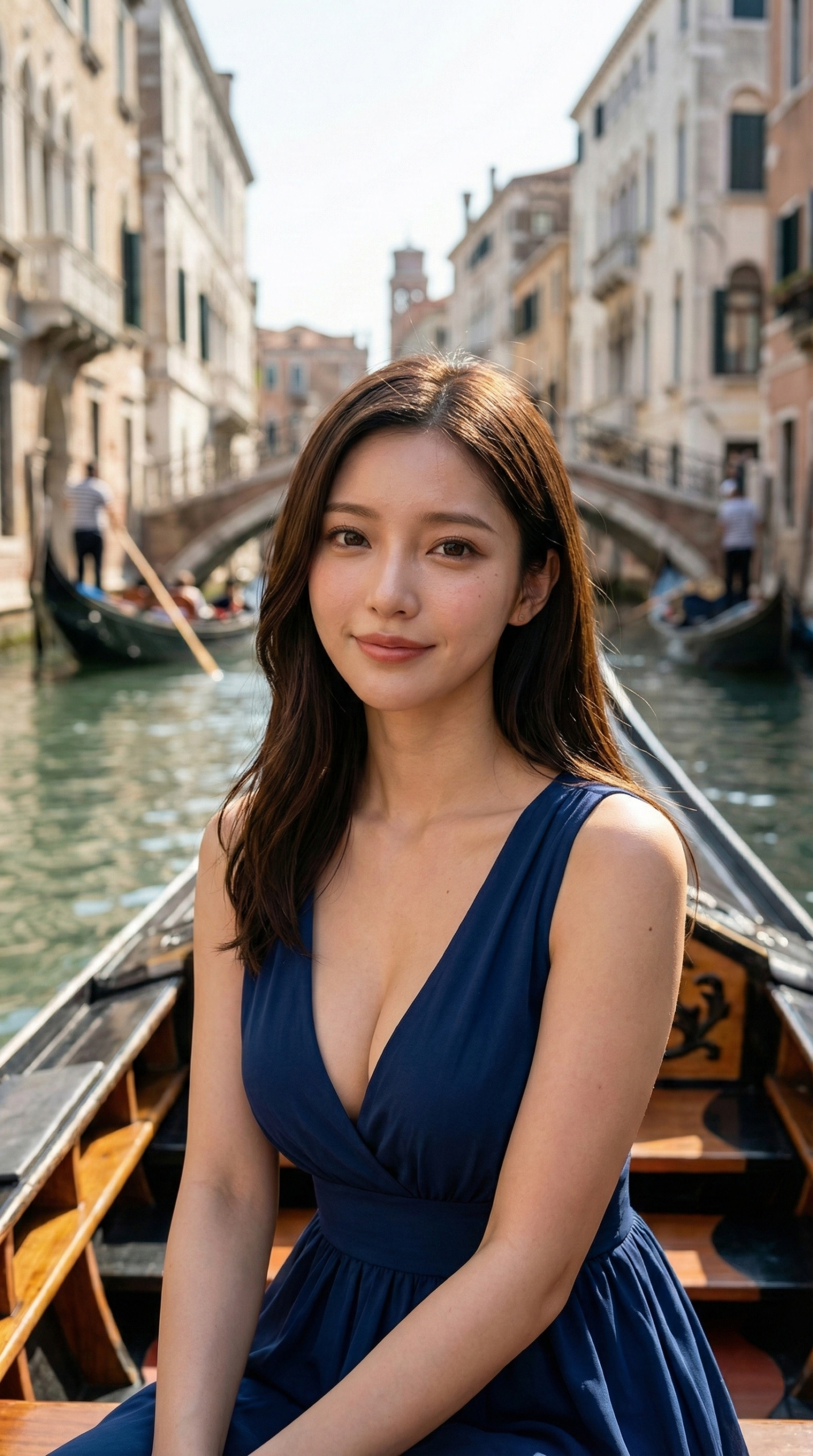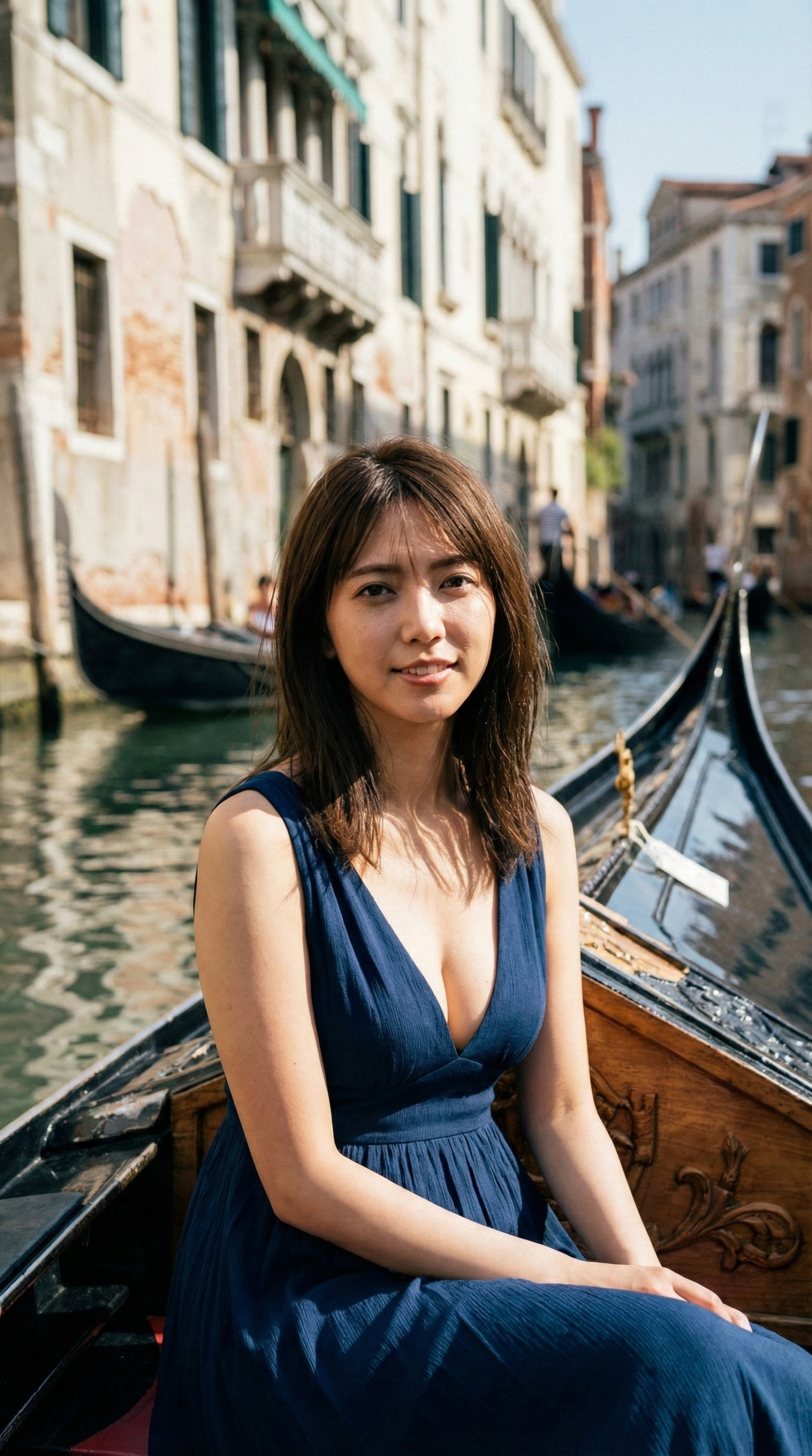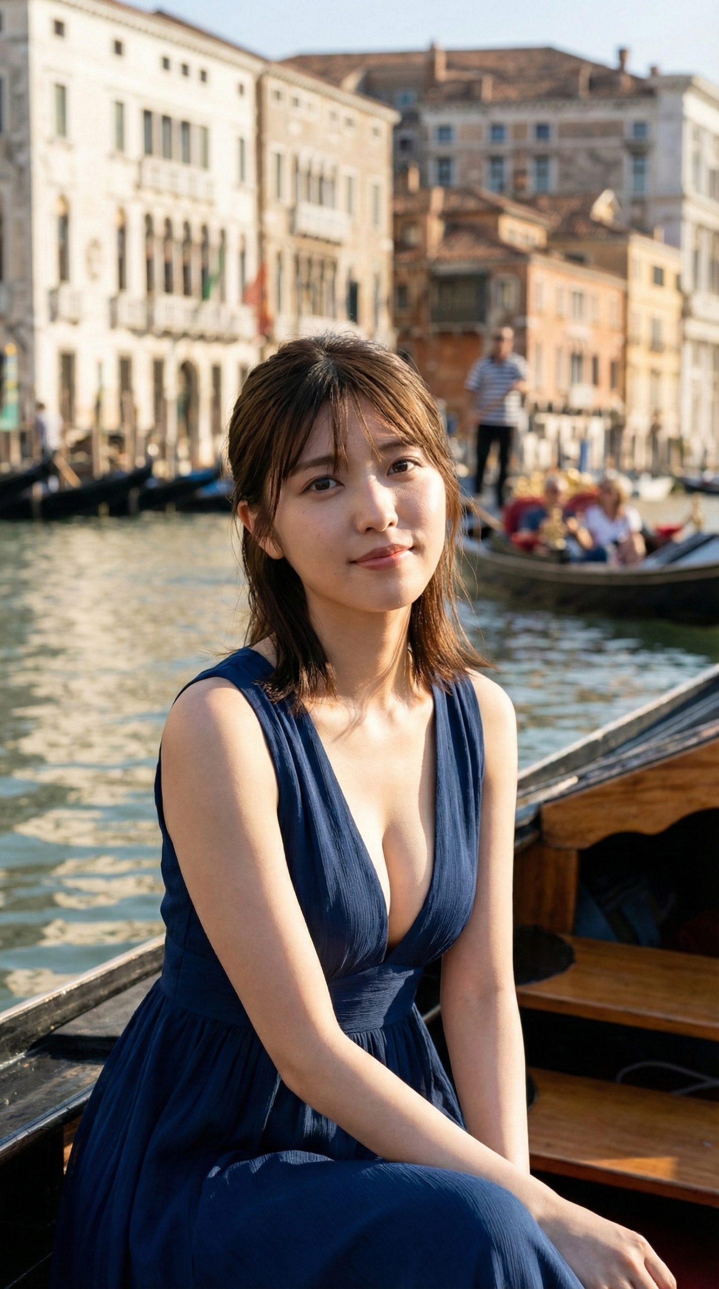 見てください、このシチュエーション。 おそらく舞台はイタリアのヴェネツィアでしょうか。歴史ある街並みを背景に、ゴンドラに揺られながらこちらを見つめる彼女……。