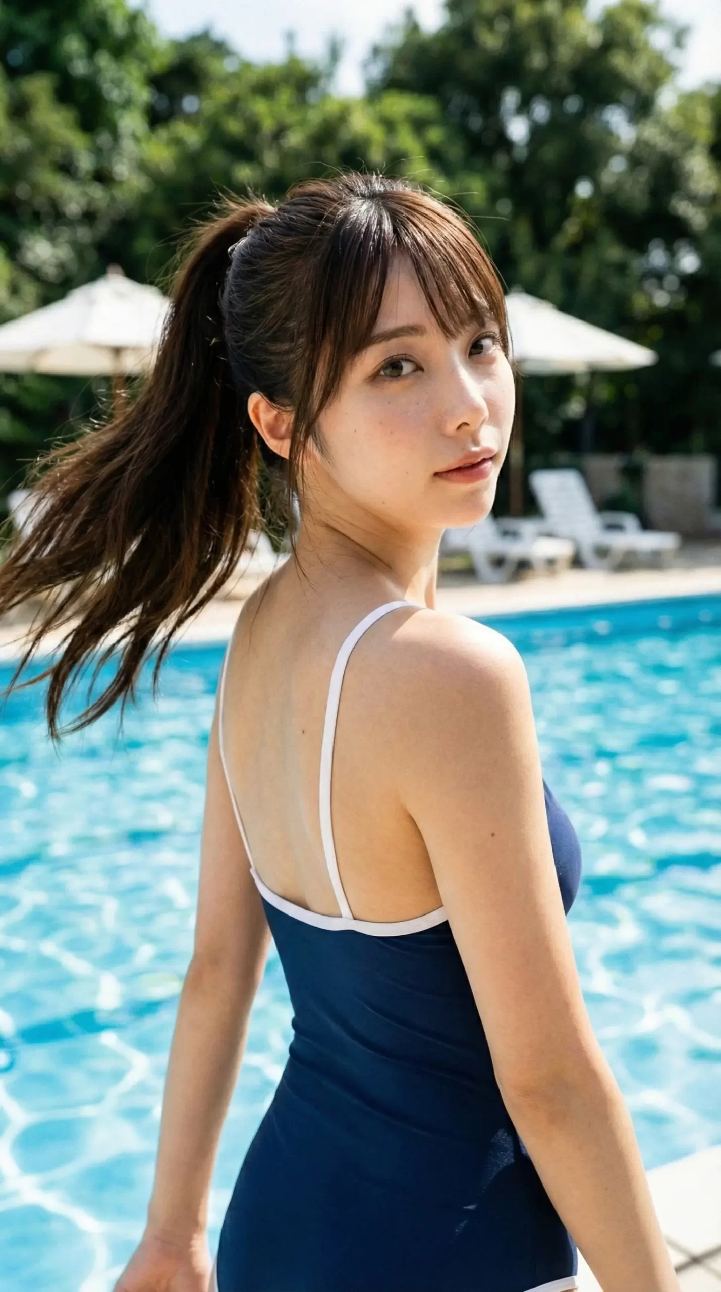 夏の日差し、きらめくプール、そして最強のポニーテール女子。 男のロマンが全部詰まった「理想の夏」を、ぜひ堪能してください!🌊☀️