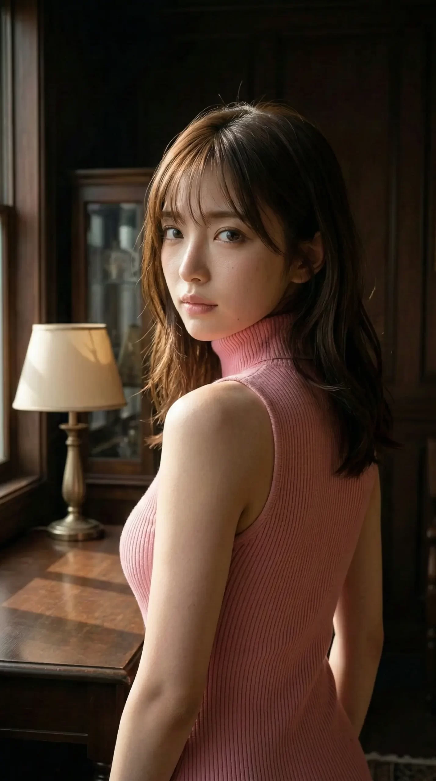 そして、このシチュエーションもズルい。 アンティーク調の落ち着いた部屋の中で、窓際から差し込む柔らかな自然光。 この光の当たり具合が、彼女の 圧倒的な透明感 を引き出しています ✨