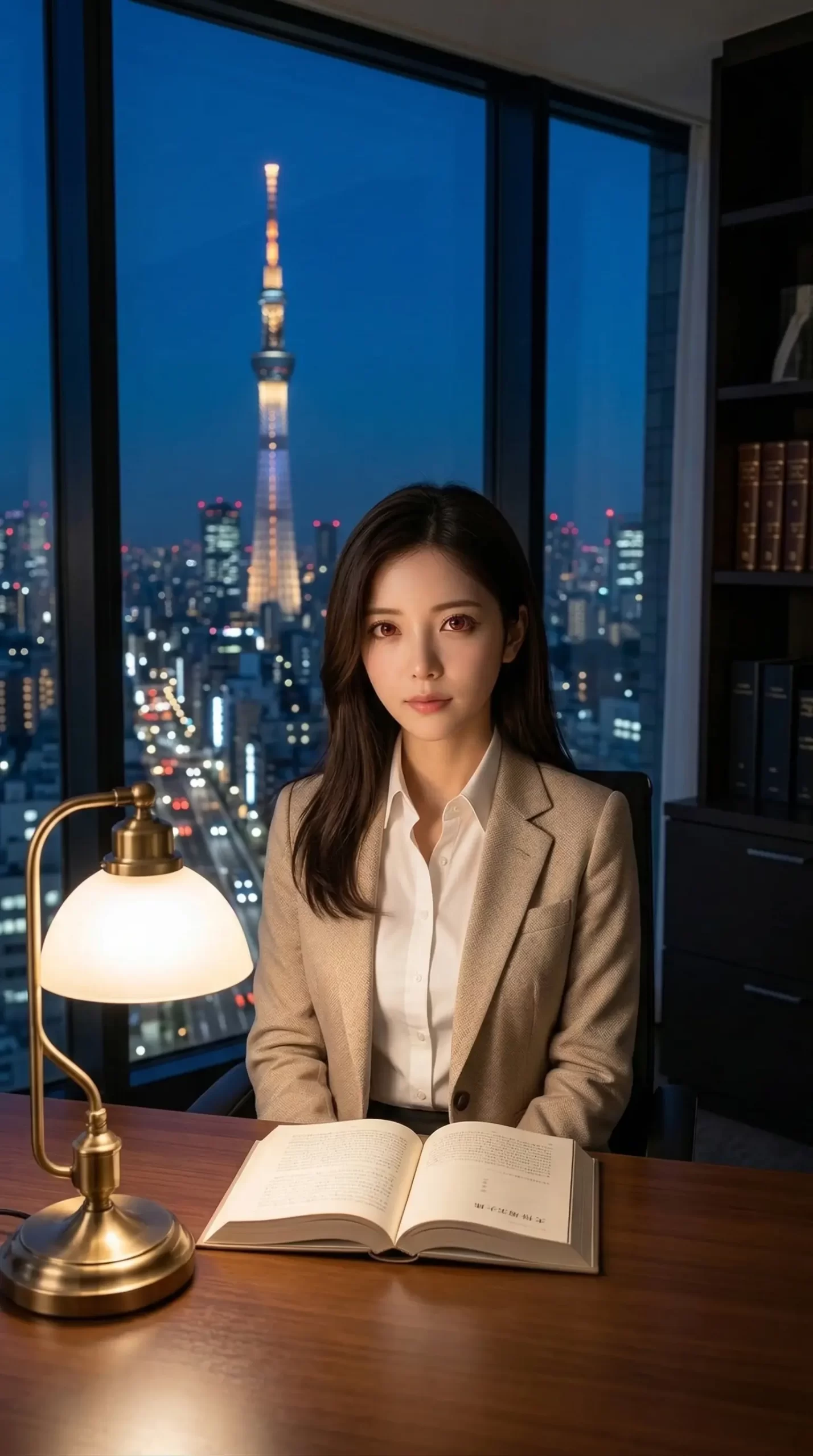 今回は、煌びやかな都会の夜景をバックに、仕事や読書に打ち込む「知的スーツお姉さん」のAI画像を大公開しちゃいます! ✨