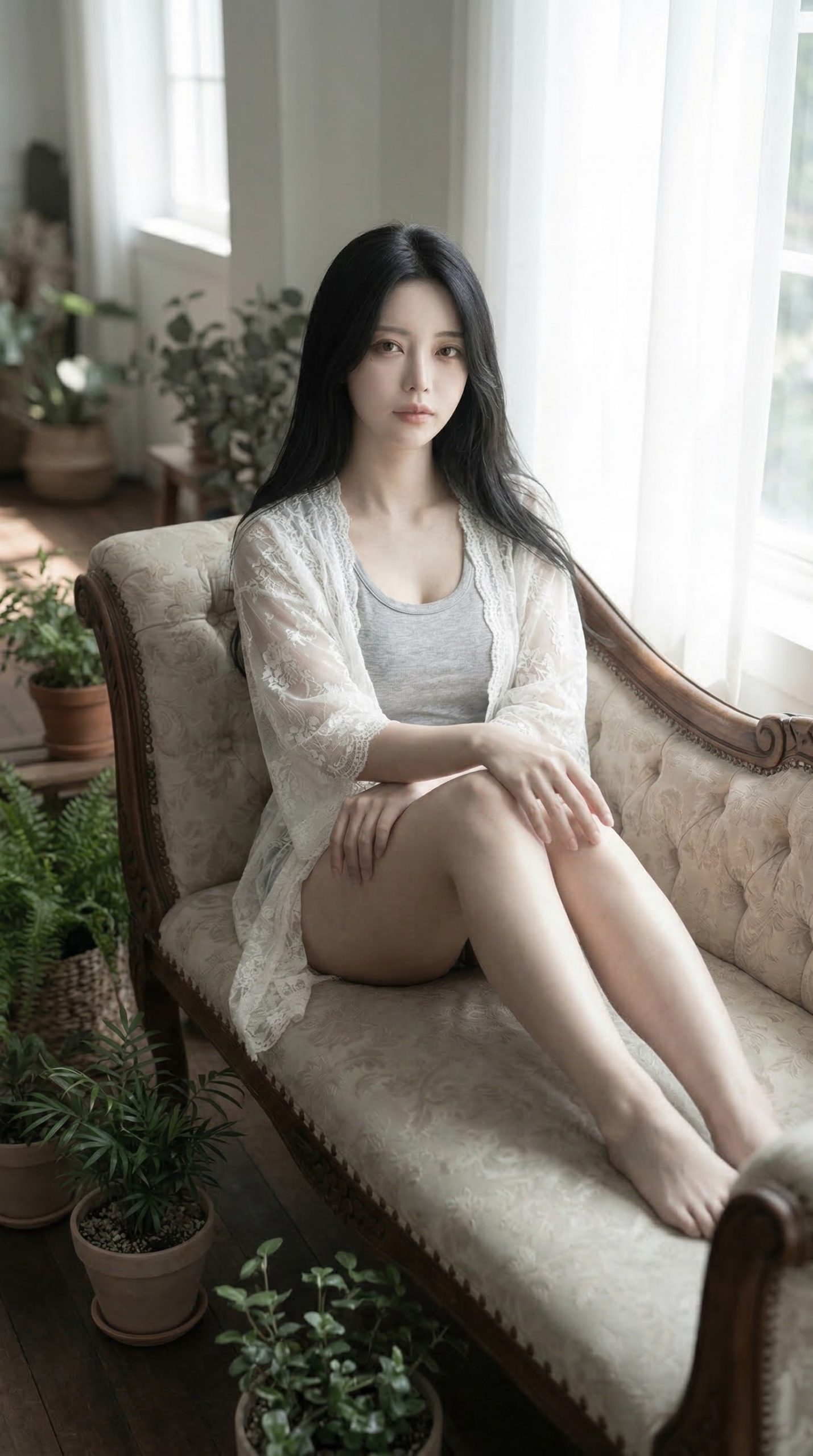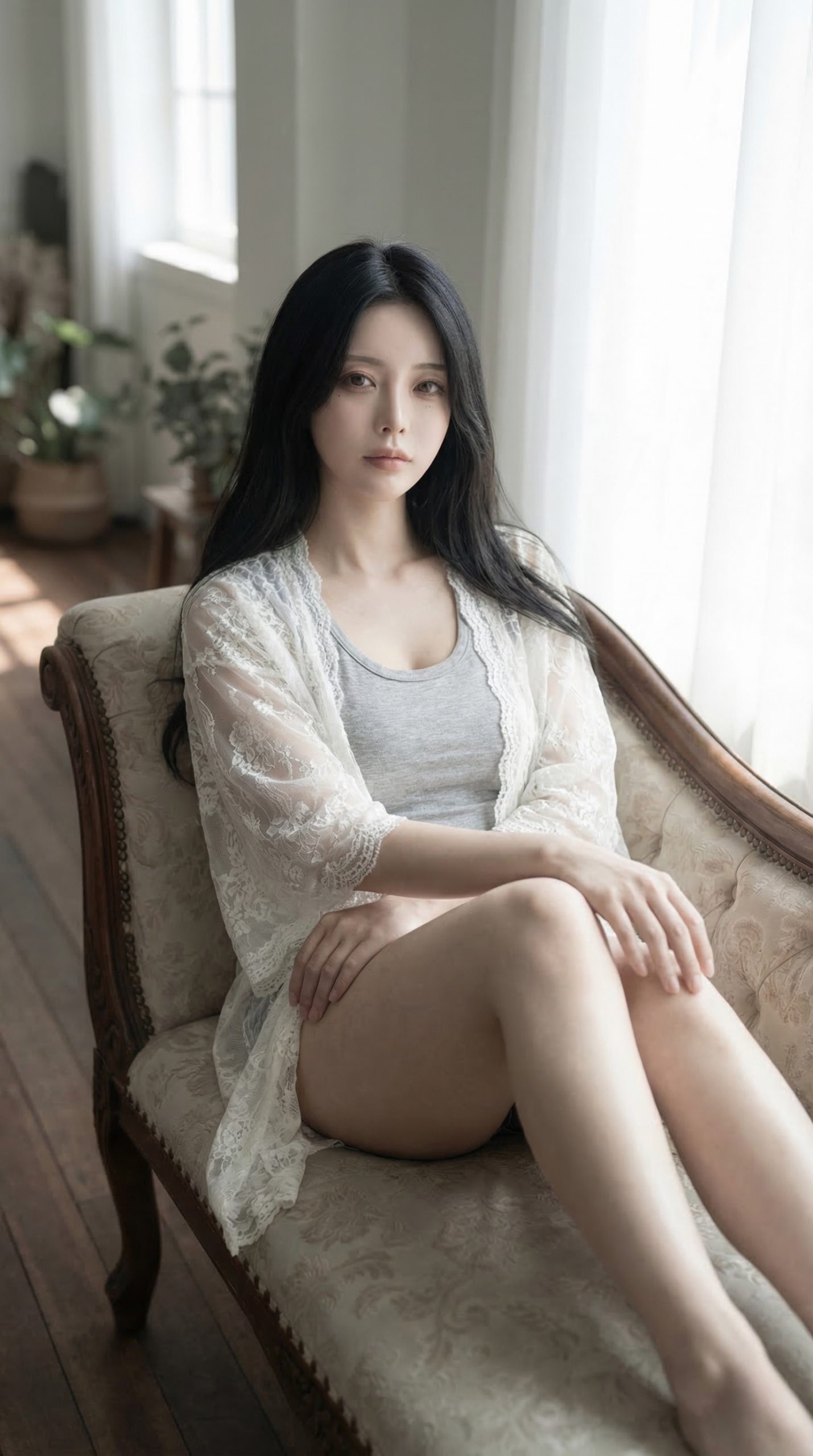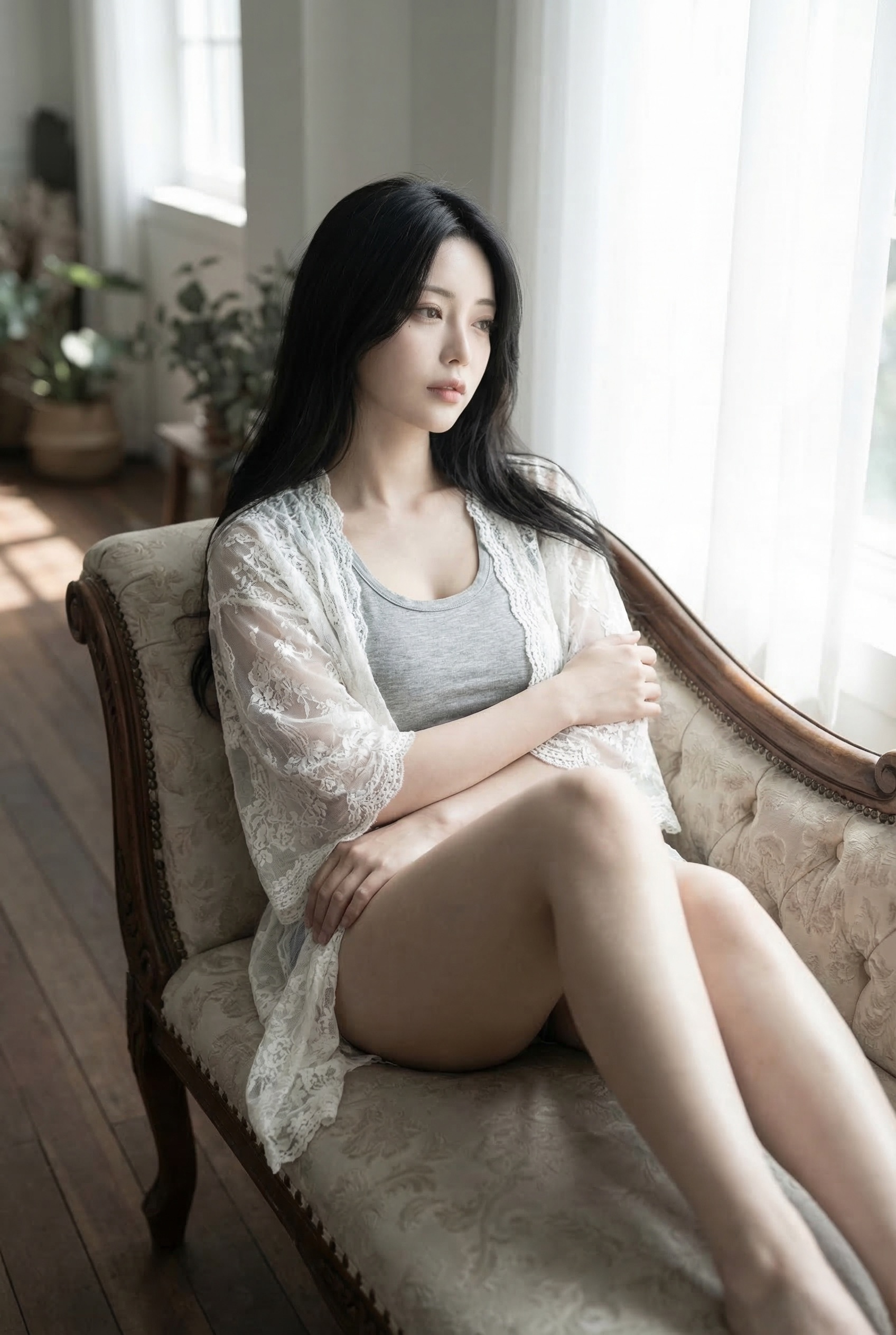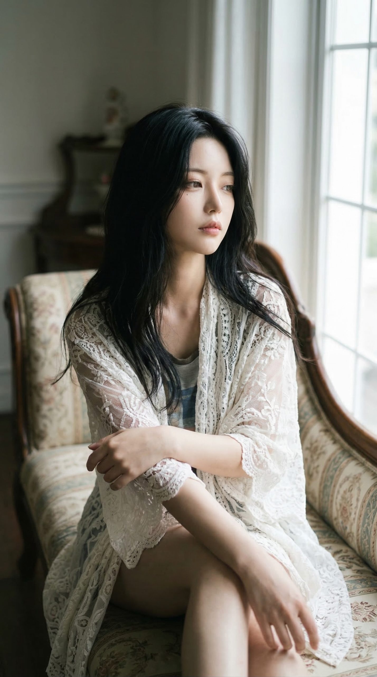 アンティーク調のソファにちょこんと座る姿や、窓の外を少し物憂げに見つめる表情。 作り込まれていない、どこかアンニュイで無防備な雰囲気に思わず ドキッ とさせられます 😍
