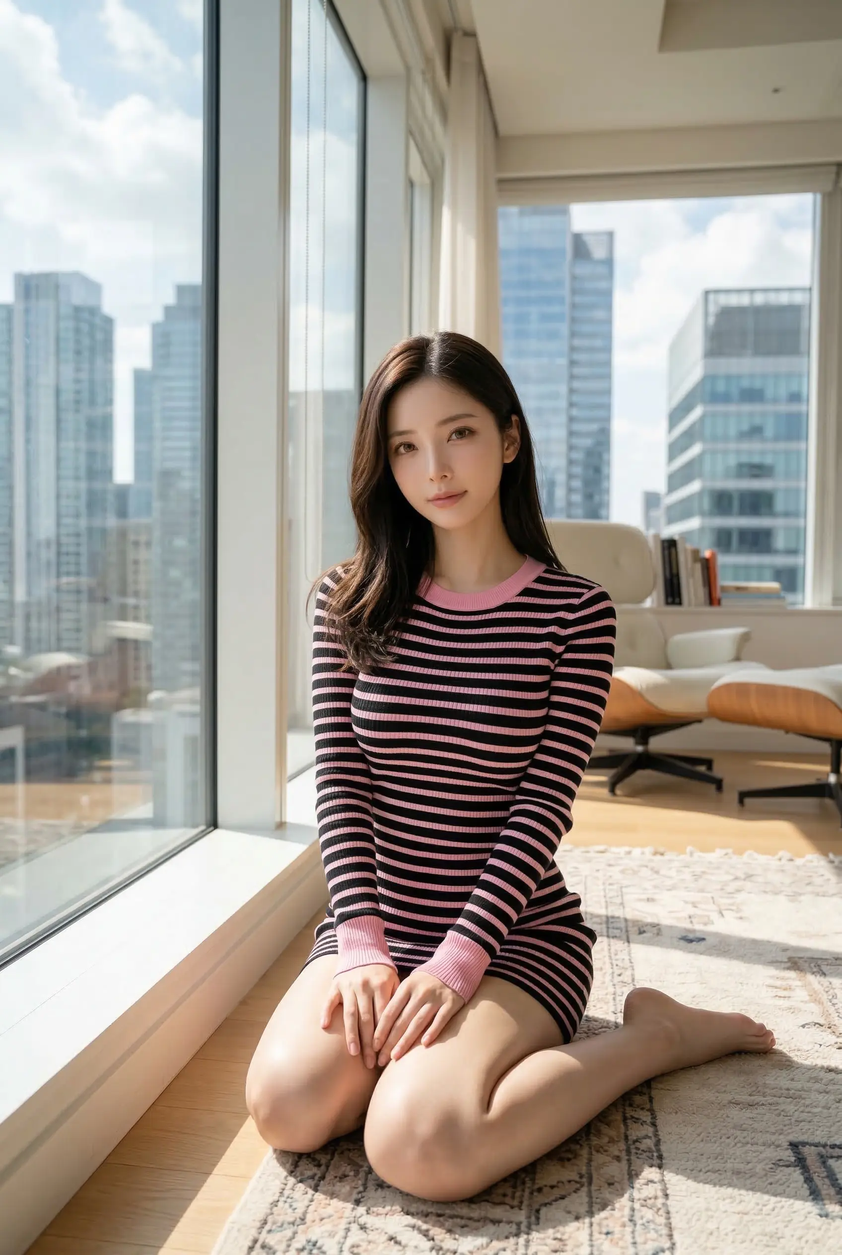 そしてなんと言っても、スラリと伸びた 素足の美脚 からは絶対に目が離せません。 こんな素敵な彼女と、高層階の部屋で景色を眺めながらのんびり休日を過ごせたら……想像しただけで日々の疲れなんて一瞬で吹き飛びそうです 🔥