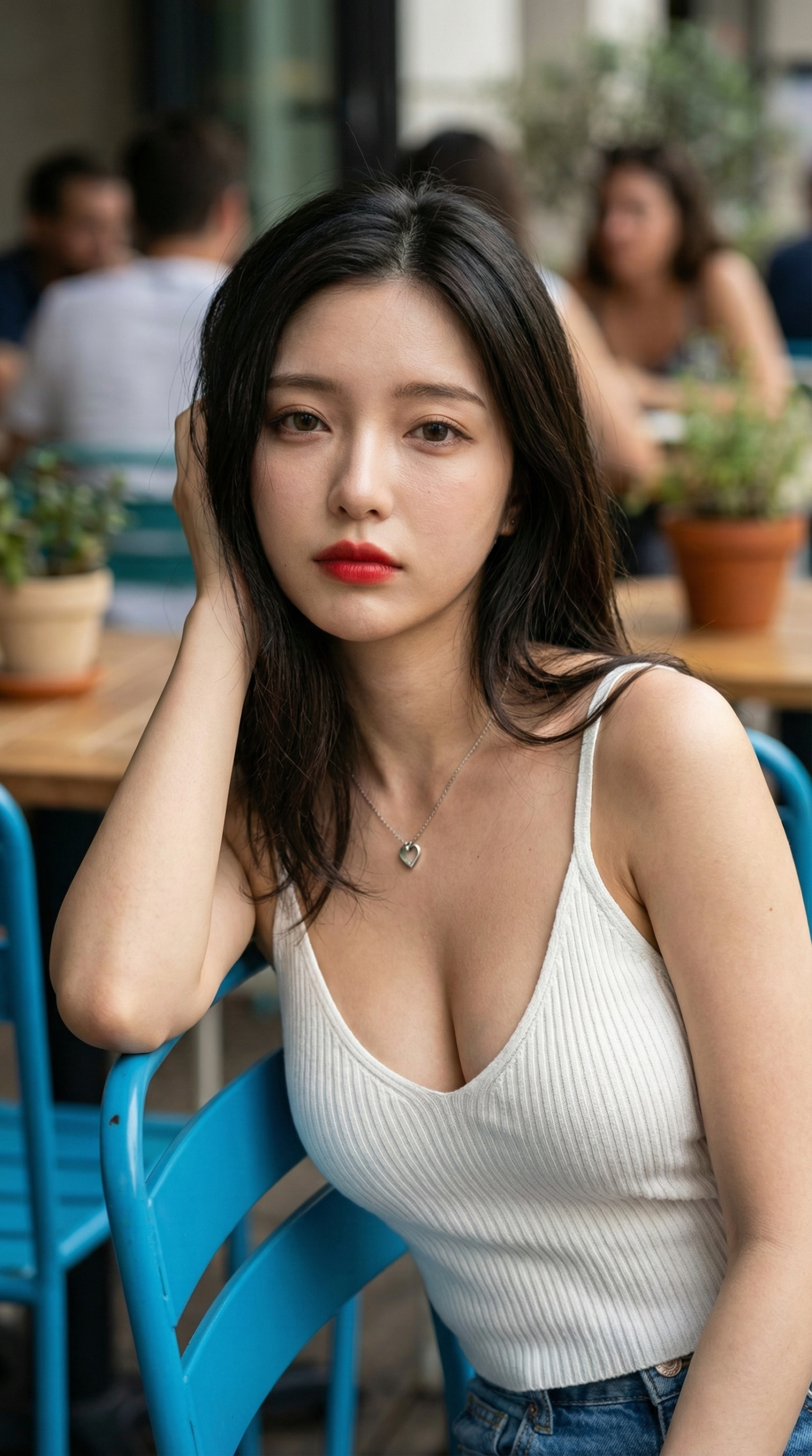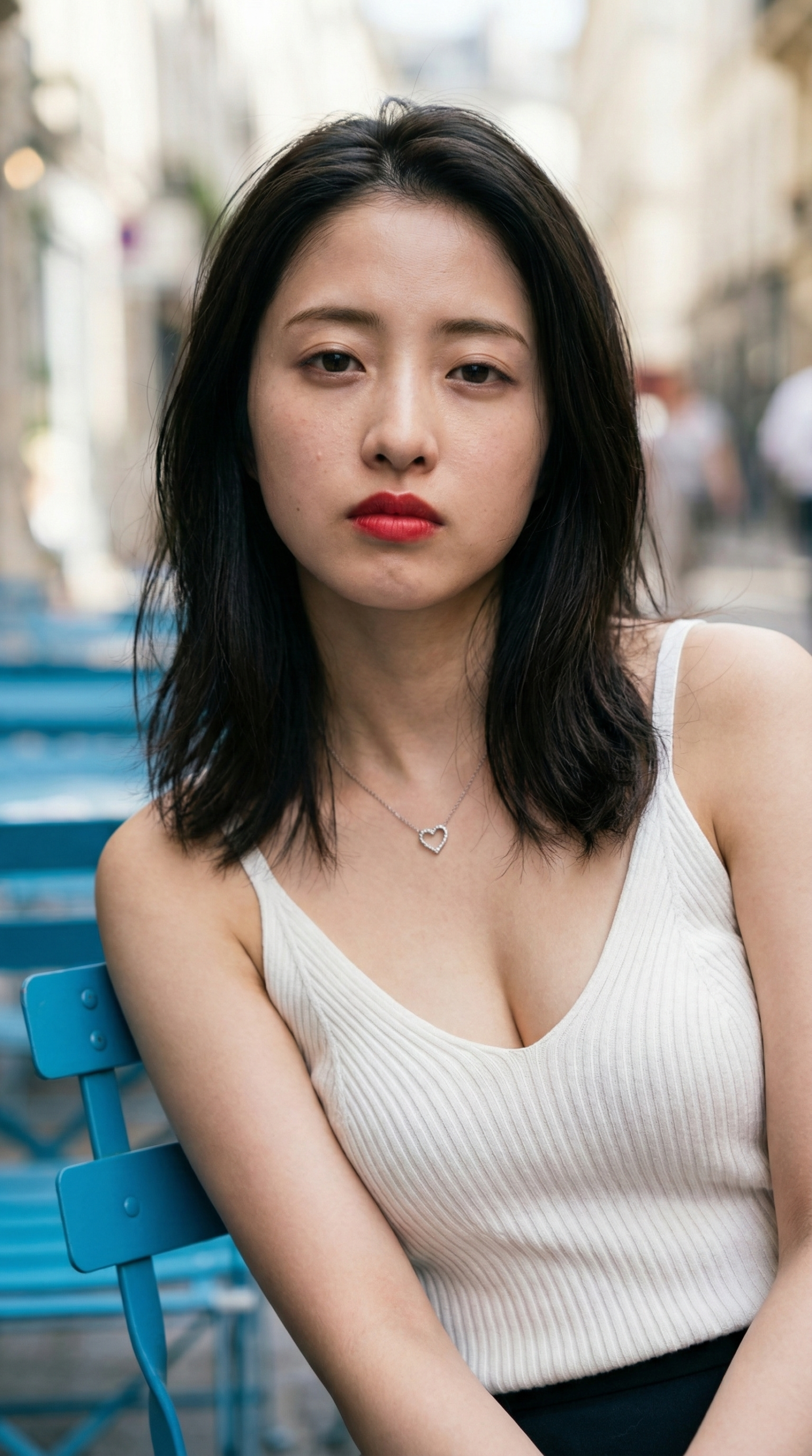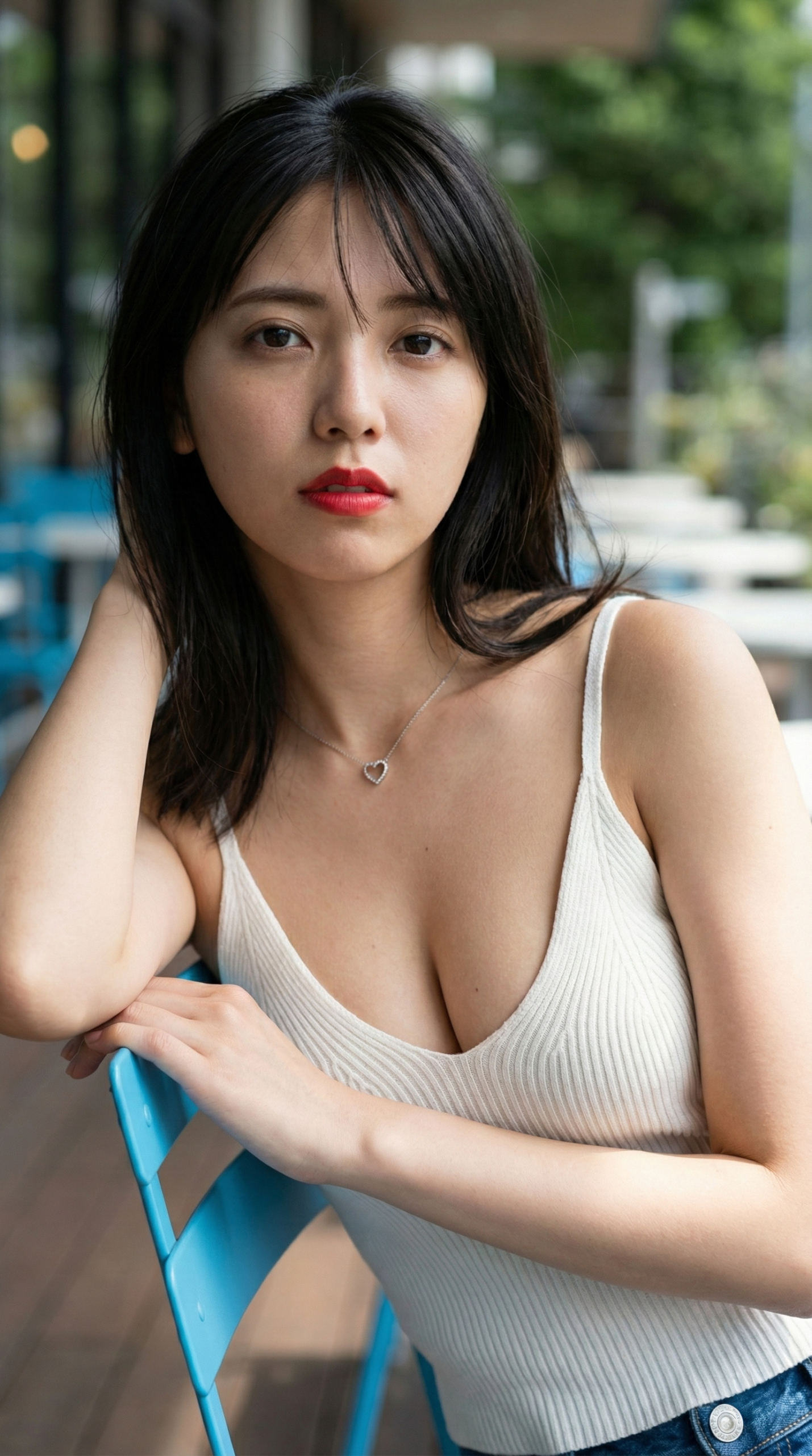 - 吸い込まれそうな視線 物憂げな表情から、少し挑戦的な赤いリップまで。どの彼女と目が合っても、AIだと分かっていてもドキドキが止まりません。