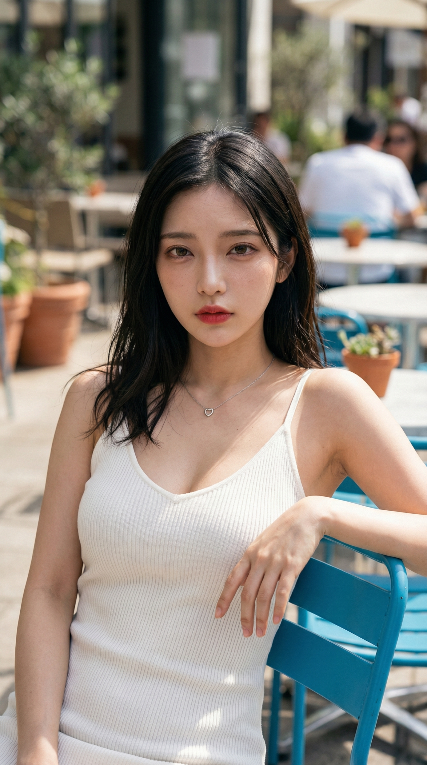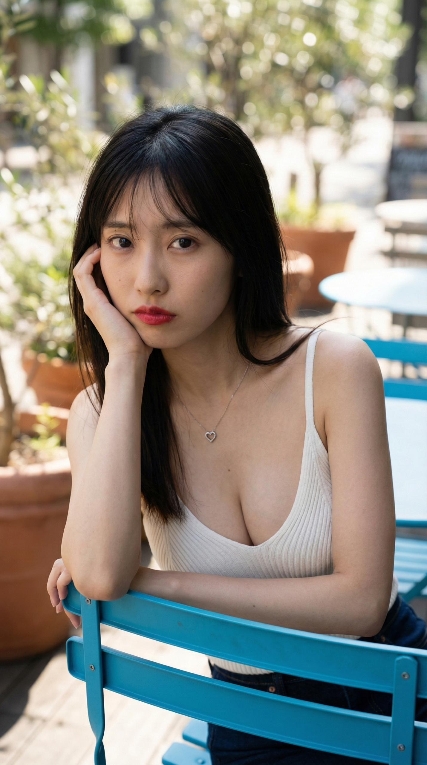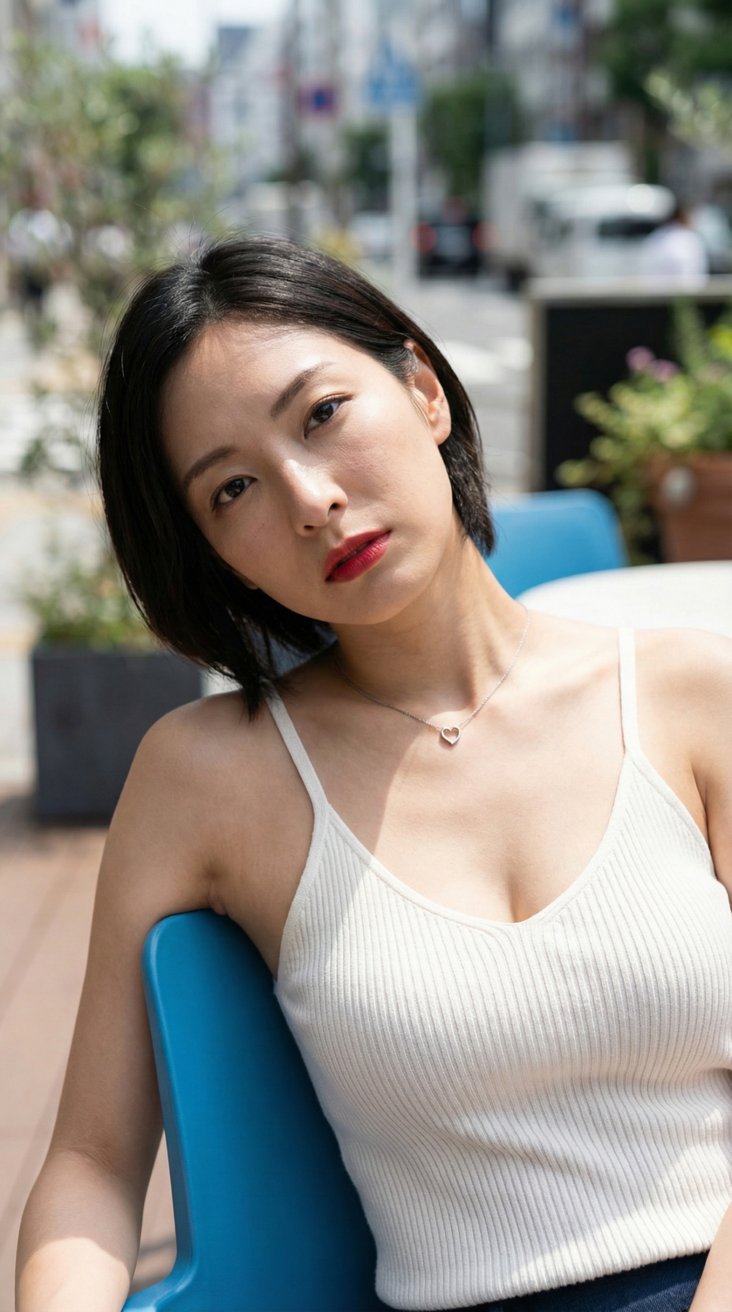 - 吸い込まれそうな視線 物憂げな表情から、少し挑戦的な赤いリップまで。どの彼女と目が合っても、AIだと分かっていてもドキドキが止まりません。